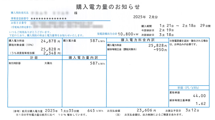 北九州市小倉北区 N様邸 売電額の推移(令和7年2月分)