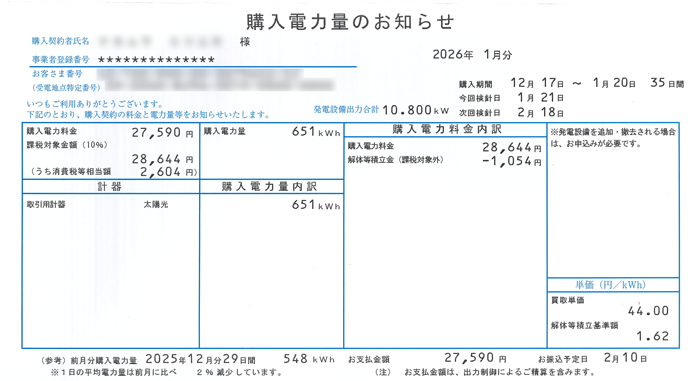北九州市小倉北区 N様邸 売電額の推移(令和8年1月分)