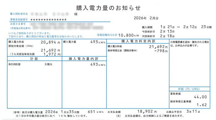 令和8年2月分 購入電力量確認表(太陽光)